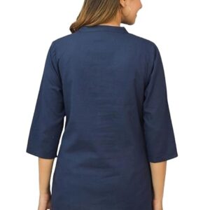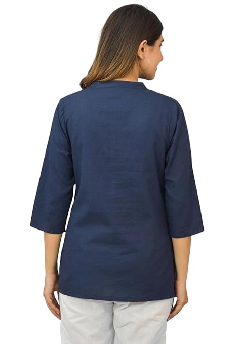 Be the cynosure of all eyes by wearing this blue women short kurti. Kurti crafted from cotton fabric, it is light in weight and will be soft for your skin. This kurti has a soothing colour and will lend you a fresh look this season.