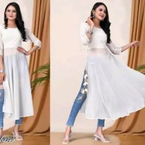 Classy White Women Georgette A-Line Kurti