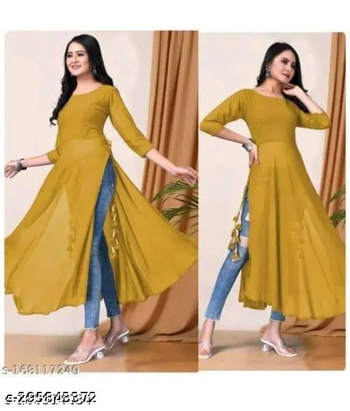 Be the cynosure of all eyes by wearing this yellow women georgette kurti. Kurti crafted from georgette fabric, it is light in weight and will be soft for your skin. This kurti has a soothing colour and will lend you a fresh look this season.