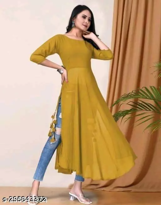 Classy Yellow Women Georgette A-Line Kurti