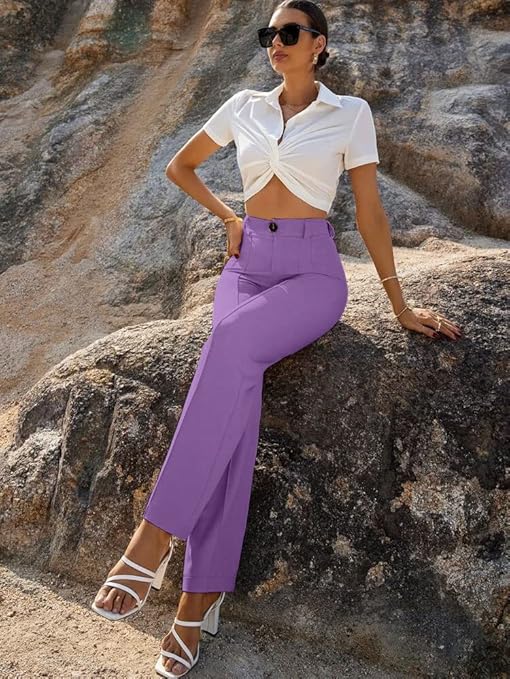These high-waisted bell bottom trousers combine a classic retro style with a trendy modern touch, making them the perfect addition to any fashion-forward wardrobe. Made from high-quality, stretchy fabric, these trousers are both comfortable and flattering. The high waist and flared legs create a slimming effect, while the stretchy material ensures a perfect fit. These trousers are machine washable and easy to care.