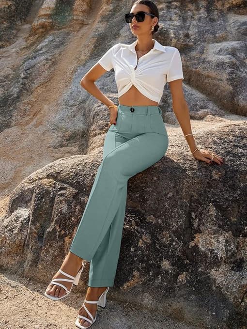 These high-waisted bell bottom trousers combine a classic retro style with a trendy modern touch, making them the perfect addition to any fashion-forward wardrobe. Made from high-quality, stretchy fabric, these trousers are both comfortable and flattering. The high waist and flared legs create a slimming effect, while the stretchy material ensures a perfect fit. These trousers are machine washable and easy to care.