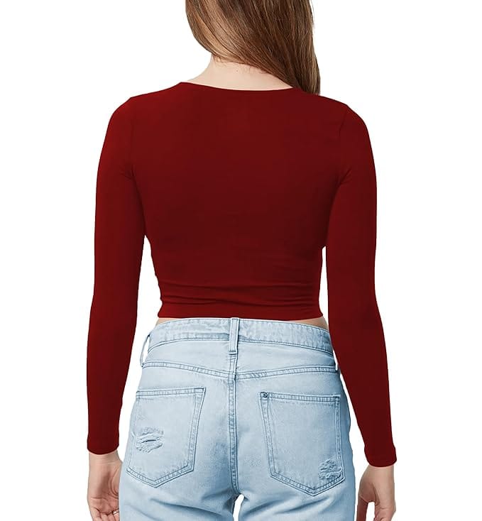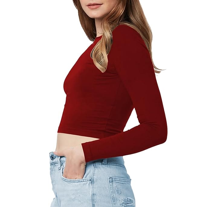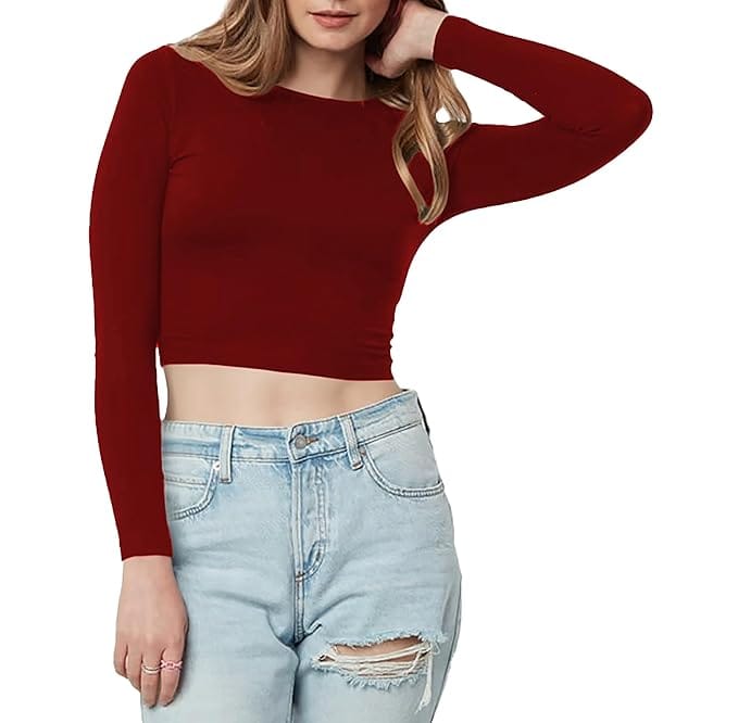 Women Cotton Boat Neck Maroon Top.