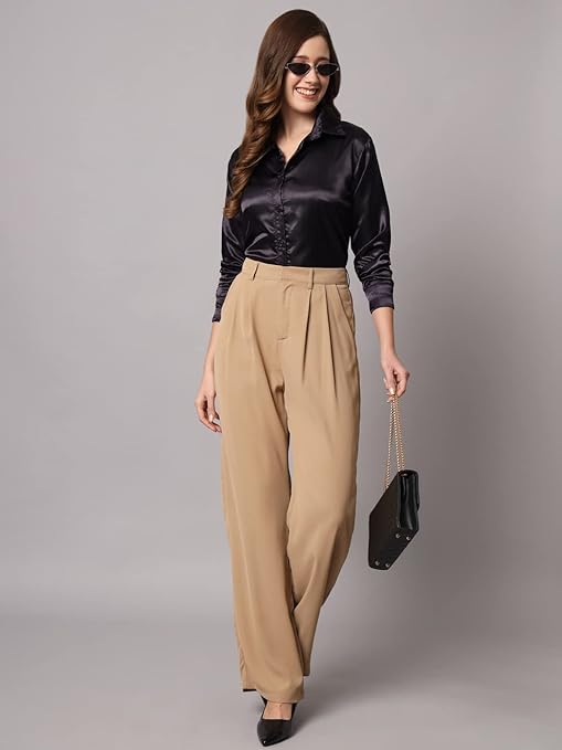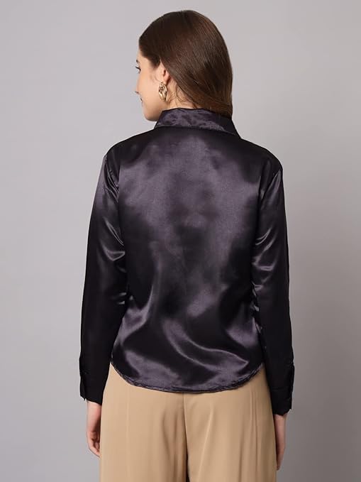 Women Formal Satin Dark Black Shirt.
