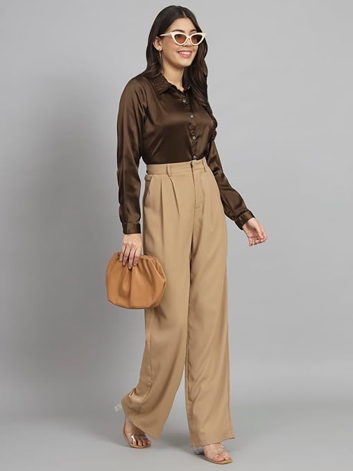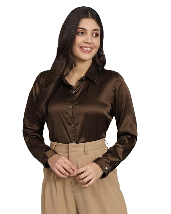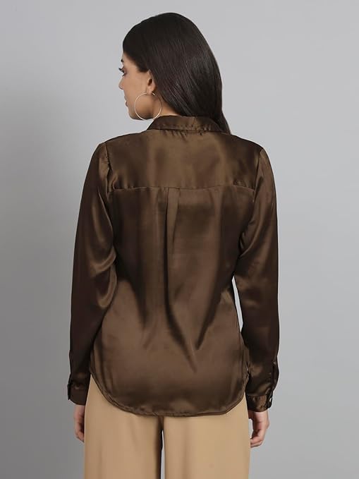 Women Formal Satin Dark Brown Shirt.