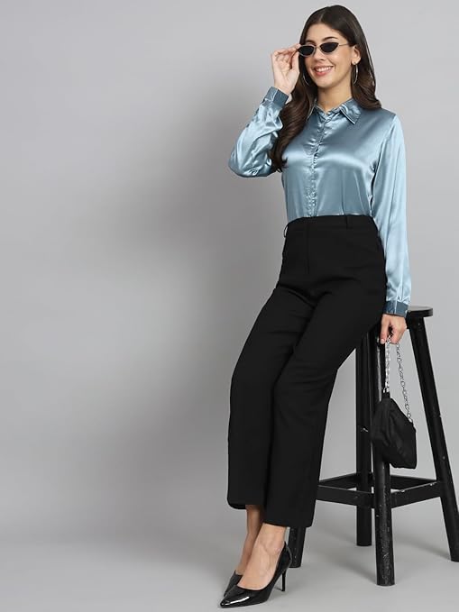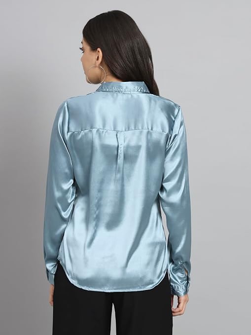 Women Formal Satin Light Blue Shirt.