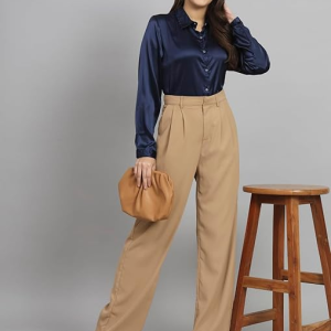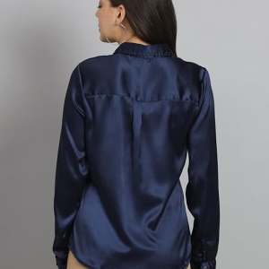 Women Formal Satin Navy Blue Shirt.