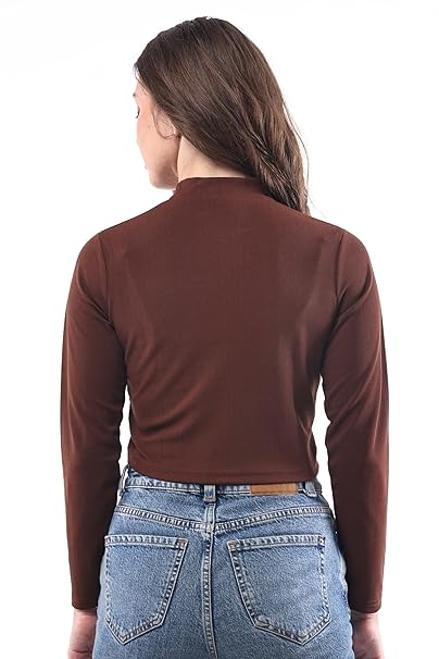 Women High Neck Coffee Brown Crop Top.