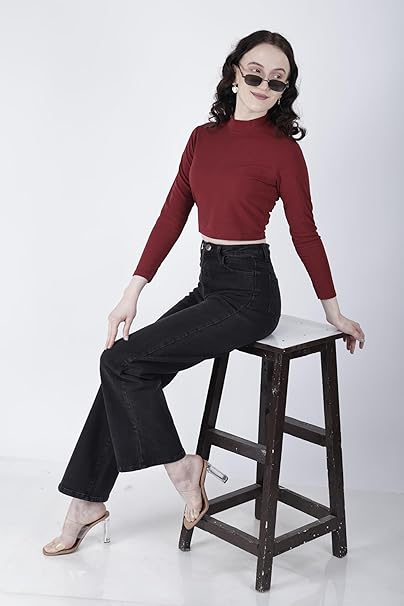 Soft stretch fabric fits like a second skin, Slim fit full sleeve turtle neck tops for women. Perfect suite for all occasions. This casual yet high neck crop top would look perfect paired with a denim mini skirt, round sunglasses, and ankle booties. Machine-washable on cold setting and safe to tumble dry on low heat with like colors, or, lay flat to dry.