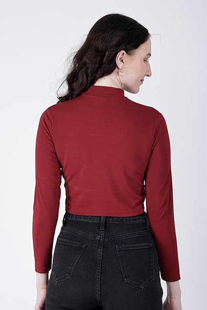 Women High Neck Maroon Crop Top.