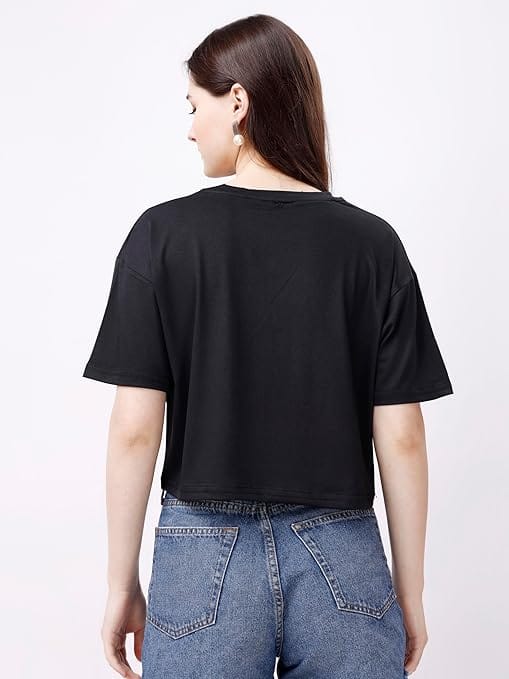 Women Oversized Black Crop Top.