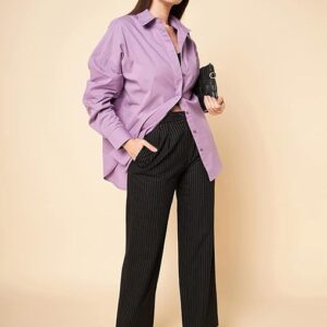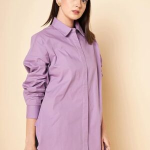 The women’s solid opaque oversized casual shirt is a comfortable and stylish piece of clothing suitable for various occasions.
