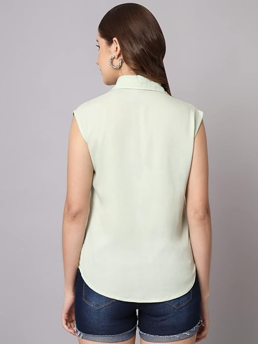 This Shirt has Spread Collar and Sleeveless and Cotton Fabric makes it one of the best in Wardrobe. It is Easy to Wear Shirt is a Perfect Combination of Comfort and Fashion. A Trendy Shirt like this one is bound to bring out the Feminine side in you and make you look oh so pretty.