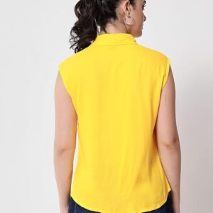 Women Plain Sleevesless Yellow Shirt.
