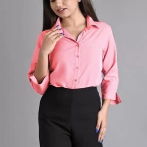 Women Plain Solid Formal Pink Shirts.