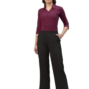 Women Poly Solid Wine Shirt.