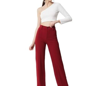 Women Polyester Solid Cherry Maroon Trousers.