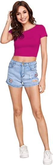 Women Round Neck Rani Pink Crop Top.