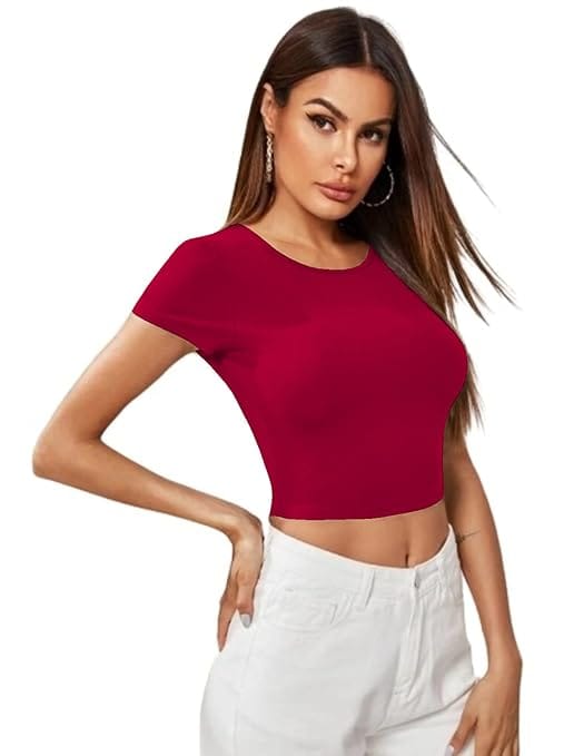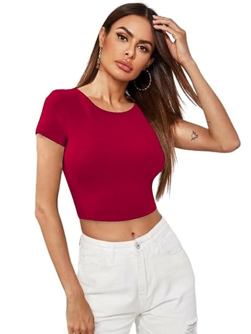 Features short sleeves and a round neck, offering a timeless and versatile look that complements various outfits. Made from a soft, durable polyester blend, this crop top provides a comfortable and breathable fit, ideal for all-day wear. The lightweight material ensures ease of movement, perfect for casual outings, workouts, or lounging at home. Available in multiple colors, this crop top allows you to express your personal style while maintaining a chic and effortless look.