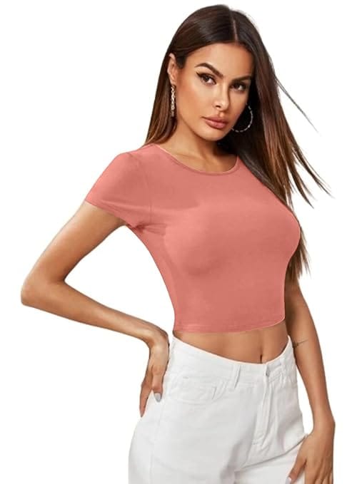 Features short sleeves and a round neck, offering a timeless and versatile look that complements various outfits. Made from a soft, durable polyester blend, this crop top provides a comfortable and breathable fit, ideal for all-day wear. The lightweight material ensures ease of movement, perfect for casual outings, workouts, or lounging at home. Available in multiple colors, this crop top allows you to express your personal style while maintaining a chic and effortless look.