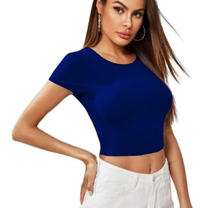 Features short sleeves and a round neck, offering a timeless and versatile look that complements various outfits. Made from a soft, durable polyester blend, this crop top provides a comfortable and breathable fit, ideal for all-day wear. The lightweight material ensures ease of movement, perfect for casual outings, workouts, or lounging at home. Available in multiple colors, this crop top allows you to express your personal style while maintaining a chic and effortless look.