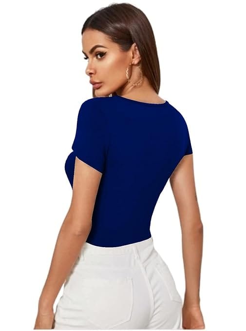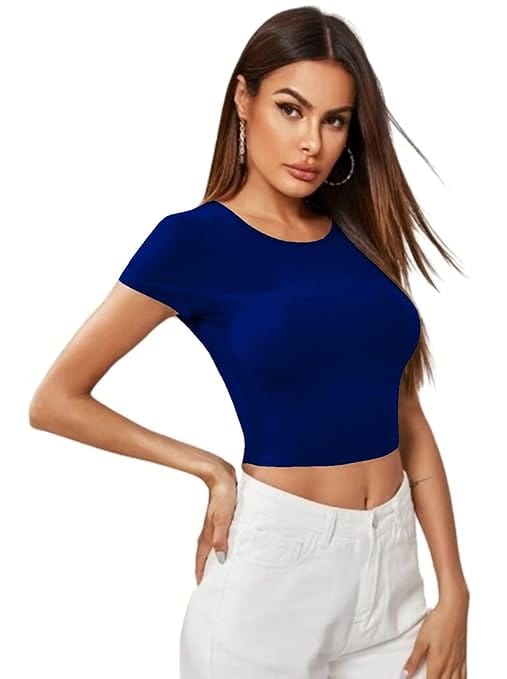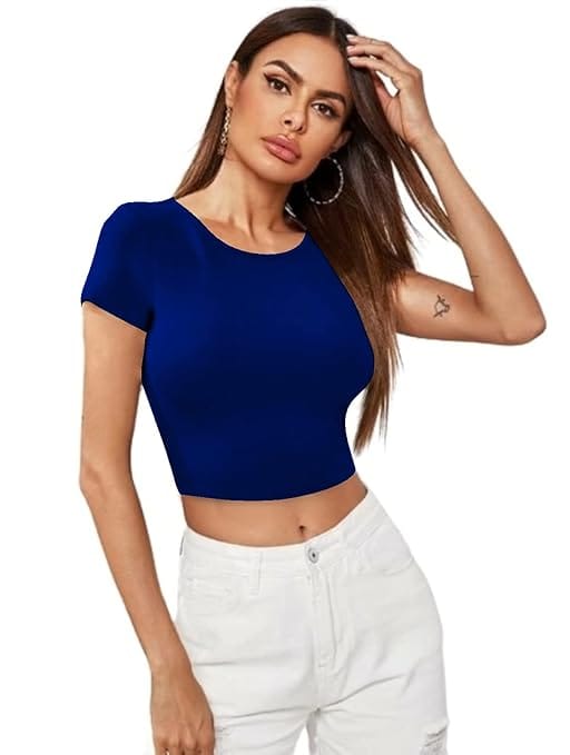 Women Short Sleeves Royal Blue Crop Top.