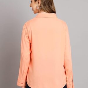 Women Solid Casual Peach Shirt.
