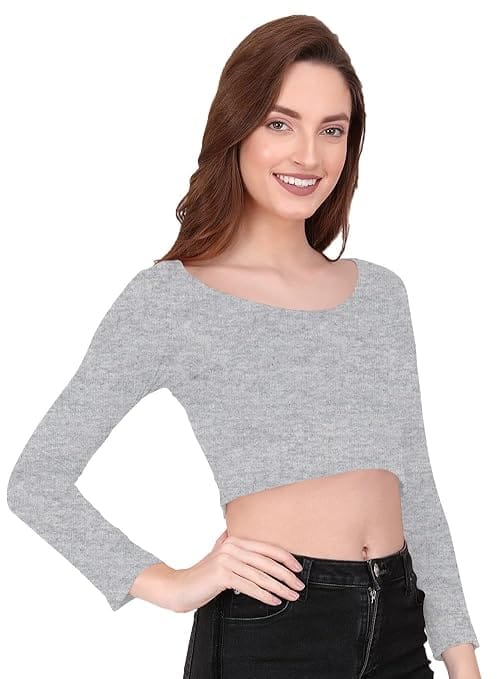 Women Solid Slim Fit Dark Grey Crop Top.