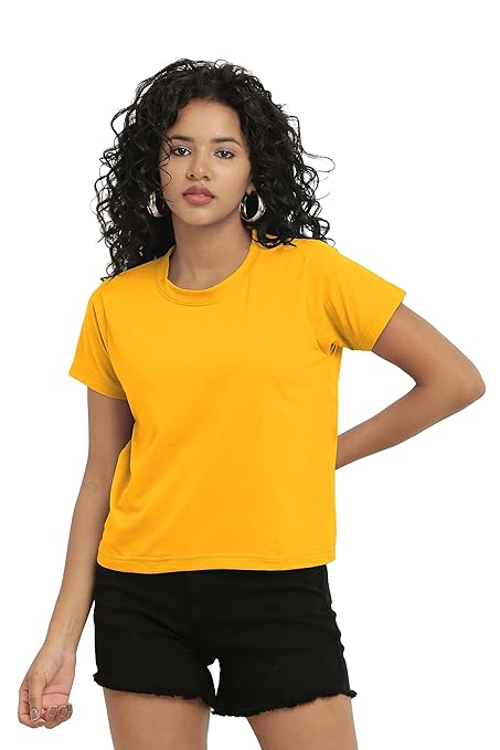 Solid round neck half sleeve cotton crop tops for ladies that effortlessly pair with jeans for a classic everyday look. Designed to suit all body types, these trendy tops create a lasting impression with their attractive style available in small, medium, large. Made from a soft, durable polyester blend, this crop top provides a comfortable and breathable fit. Machine-washable on cold setting and safe to tumble dry on low heat.