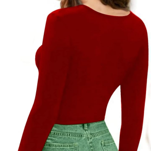 Women V-Neck Red Crop Top.