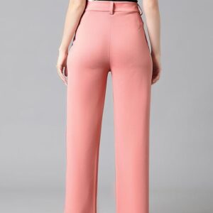 Women’s High Rise Baby Pink Cotton Fit Trousers.