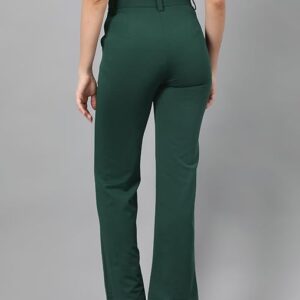 Women’s High Rise Green Cotton Fit Trousers.