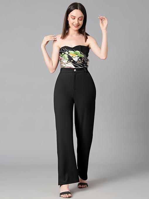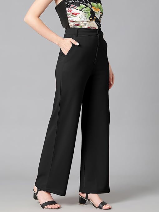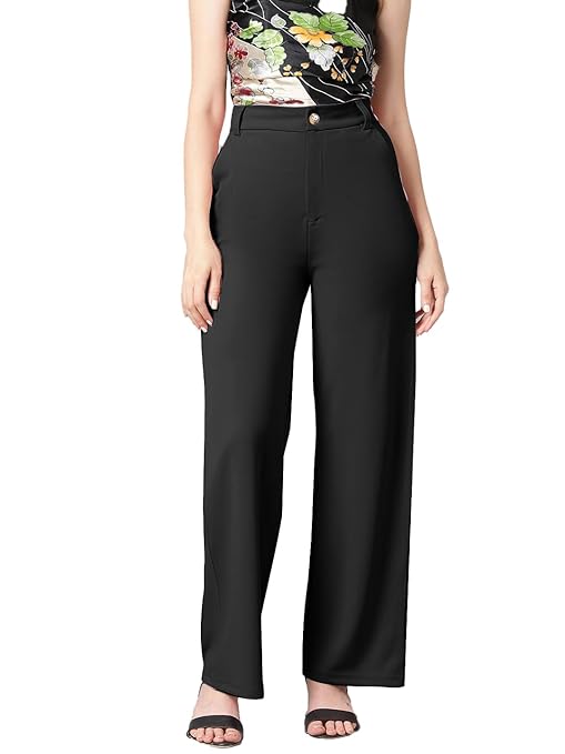 These women stylish solid pant are perfect for you. Well crafted in premium cotton blend for unmatched drape complemented by fine softness and a smooth touch for ease of wear, these are tailored in a stylishly designed straight fit, cross pocket with a high-rise silhouette to compliment your contours. Pair them with a contrast top for an alluring combination.