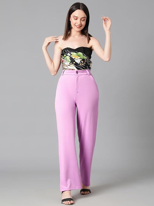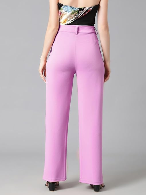 Women’s High Rise Lavender Cotton Fit Trousers.