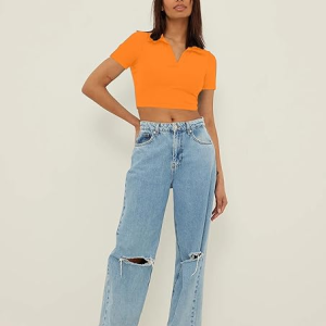 This knit top featuring a V-Collar Rib-Knit neckline, cap sleeves, and a crop straight closure at the hem. This casual yet chic top would look perfect paired with a denim mini skirt, round sunglasses, and ankle booties. Machine-washable on cold setting and safe to tumble dry on low heat with like colors, or, lay flat to dry.